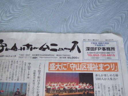 本日12月10日発行、守山ホームニュースの右上に広告を掲載しました。